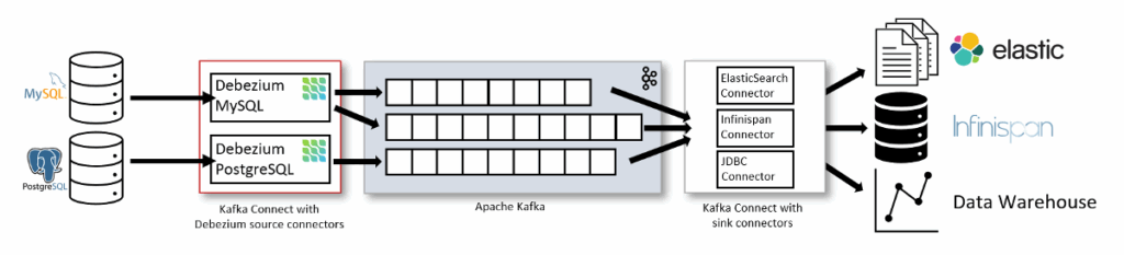 Debezium is a CDC (Capture Data Change) streamer, or, more precisely, it is a set of connectors for various database families compatible with the Apache Kafka Connect framework.