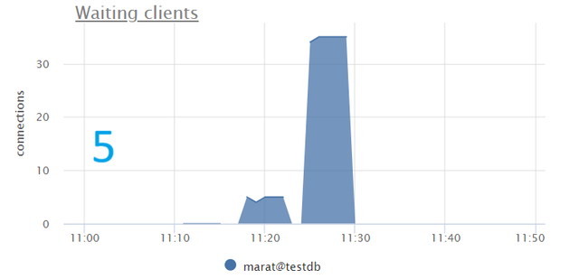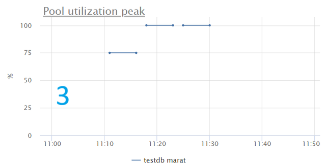 , you won’t see significant spikes on the graphs below. However, starting from the second test and onwards, when the number of connections exceeds the pool_size