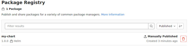 ), and navigate to the created pipeline. Once the Job is completed, go to Packages & Registries -> Package Registry and check that our Helm chart is there.