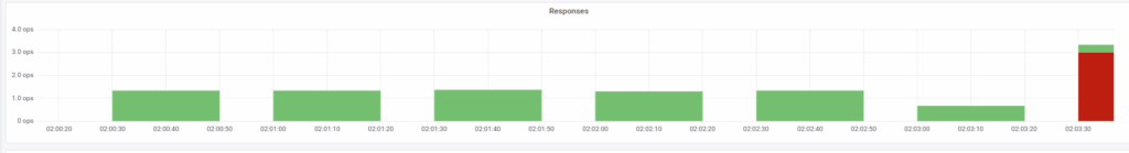) to the application server. The purpose of that test was to get a sense of the approximate number of errors (and if we have any at all). As a side note, the average duration of deploying each pod up to the state of complete readiness amounted to about five to ten seconds. Here are the results: