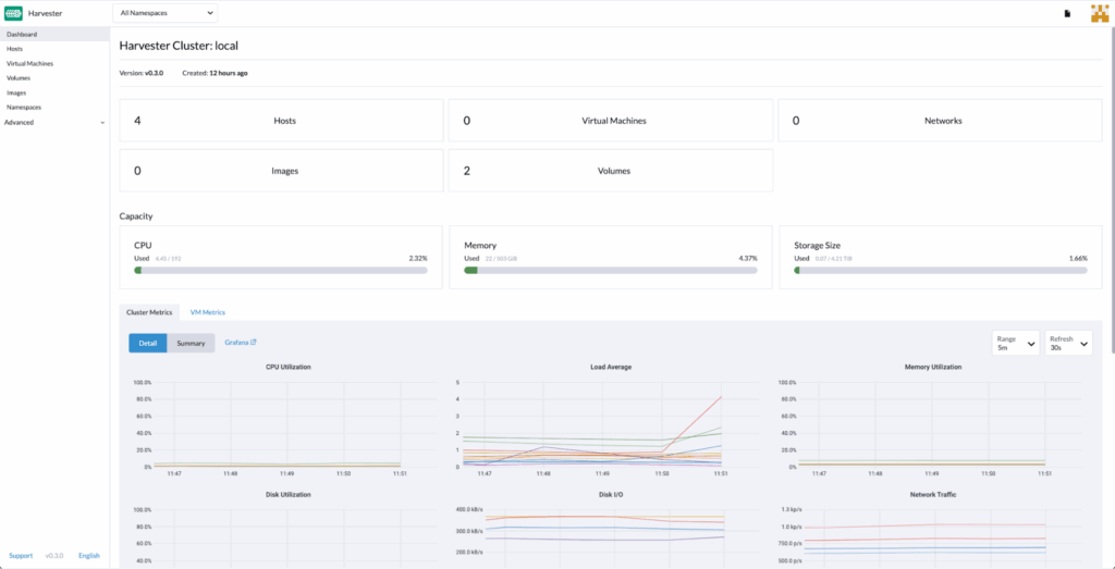 For simplicity’s sake, Harvester can be viewed as a Kubernetes platform for managing not only K8s clusters but also virtual machines using a single dashboard (the integration of RKE2 and KubeVirt made that possible).