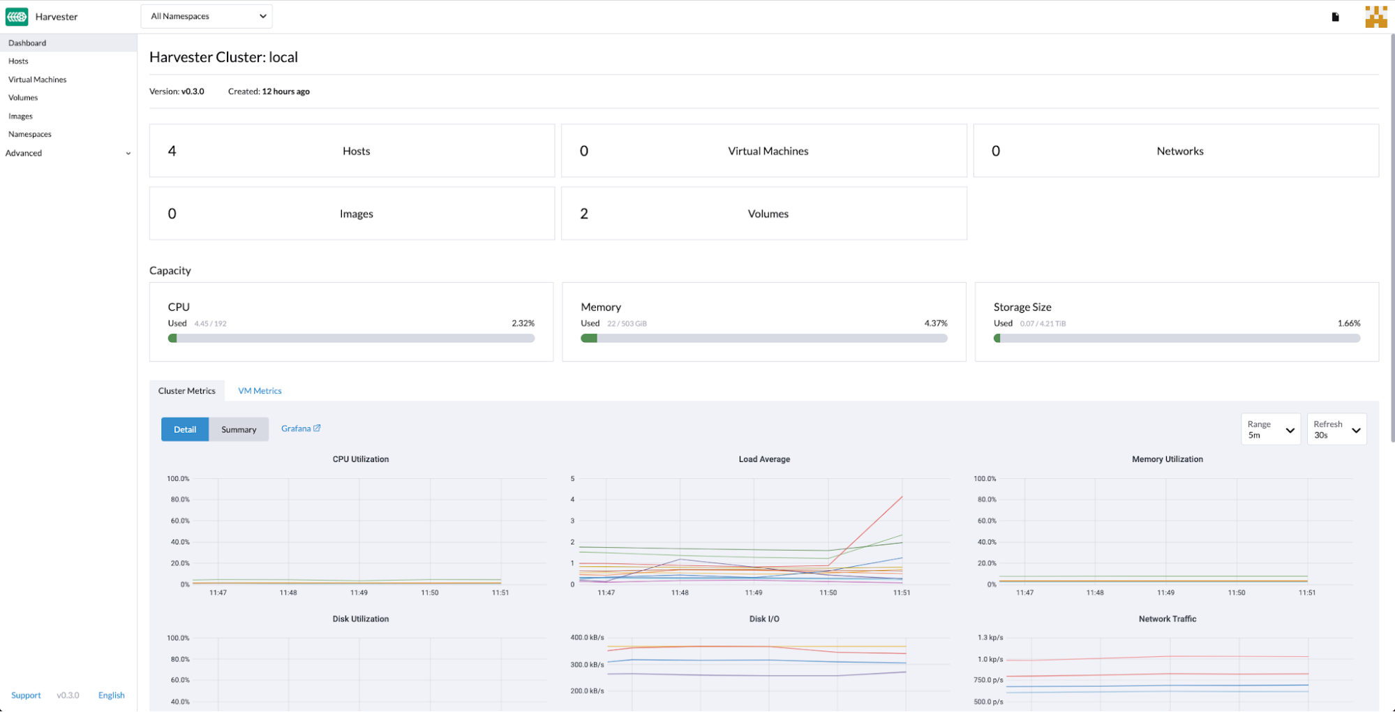 - Simultaneous virtualization management via Rancher for multiple Harvester clusters;
