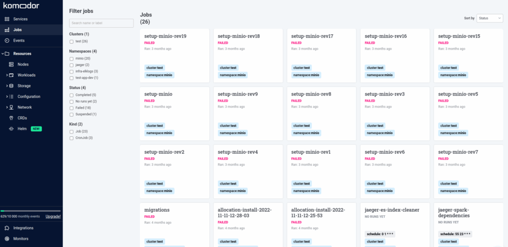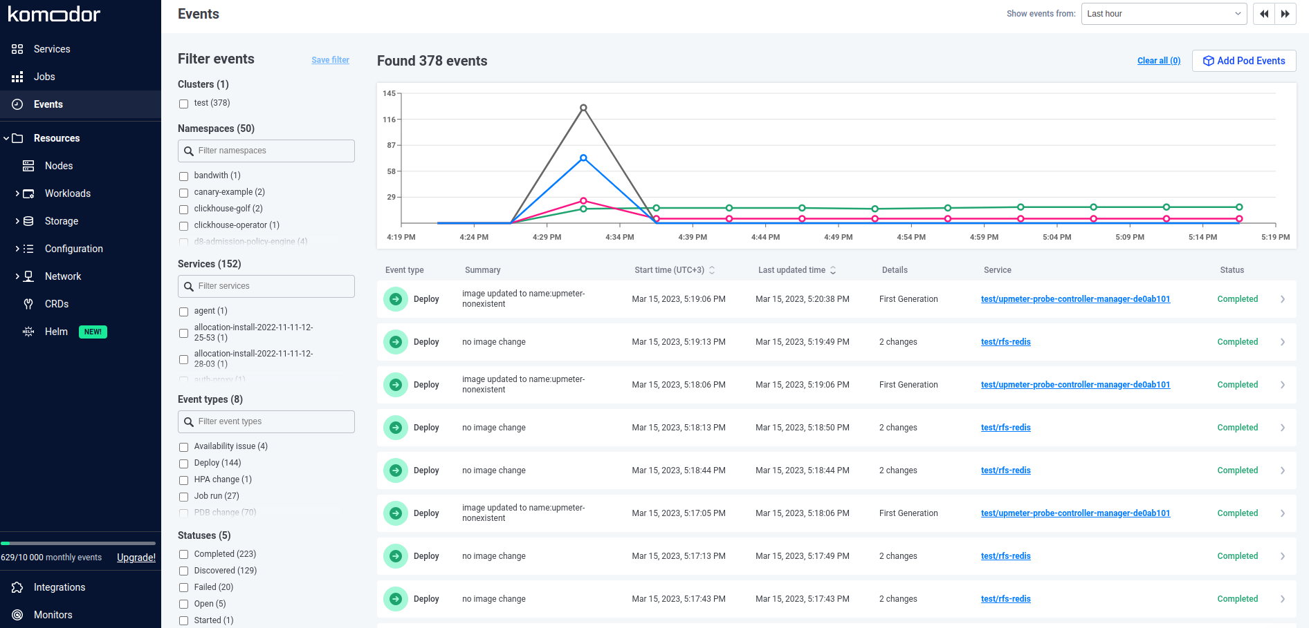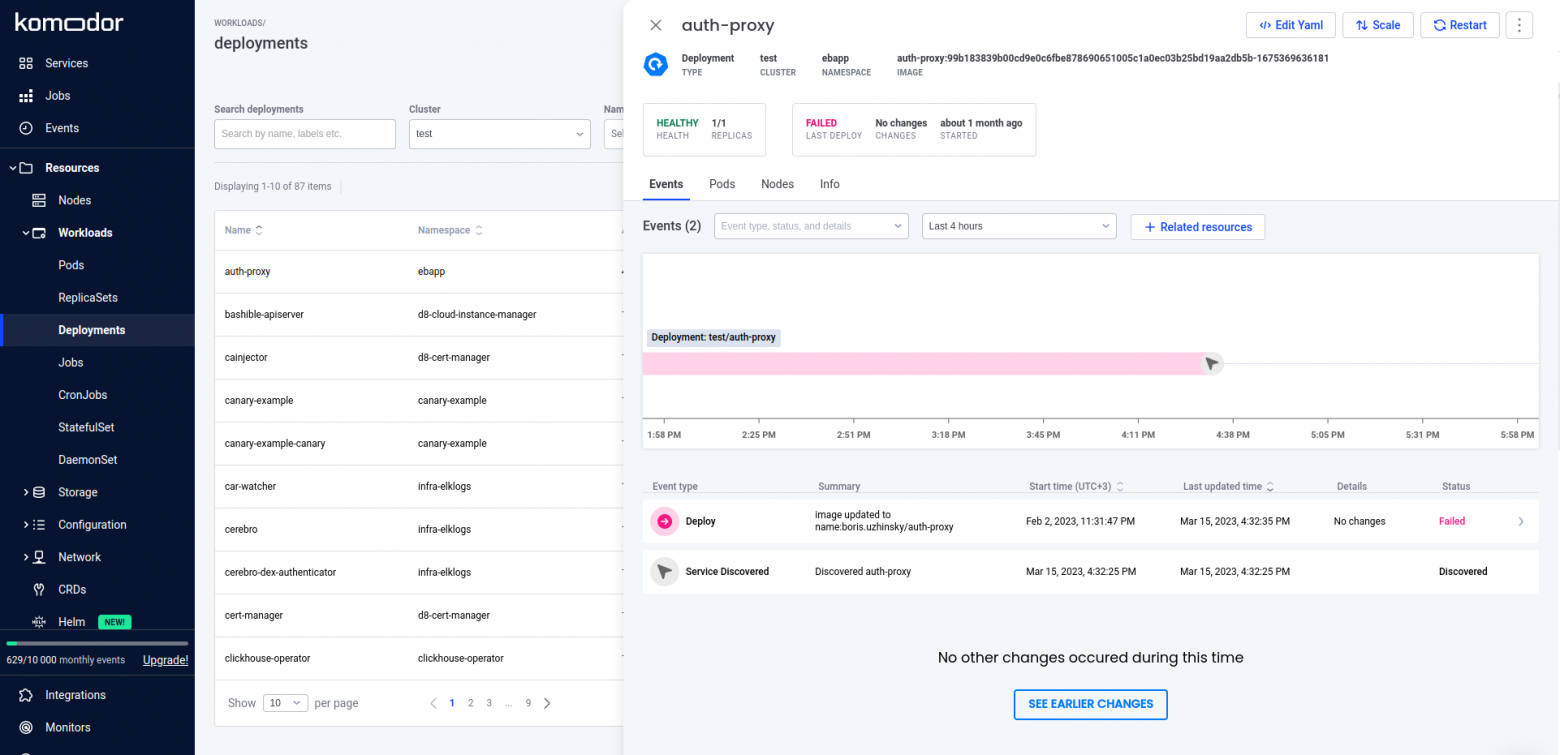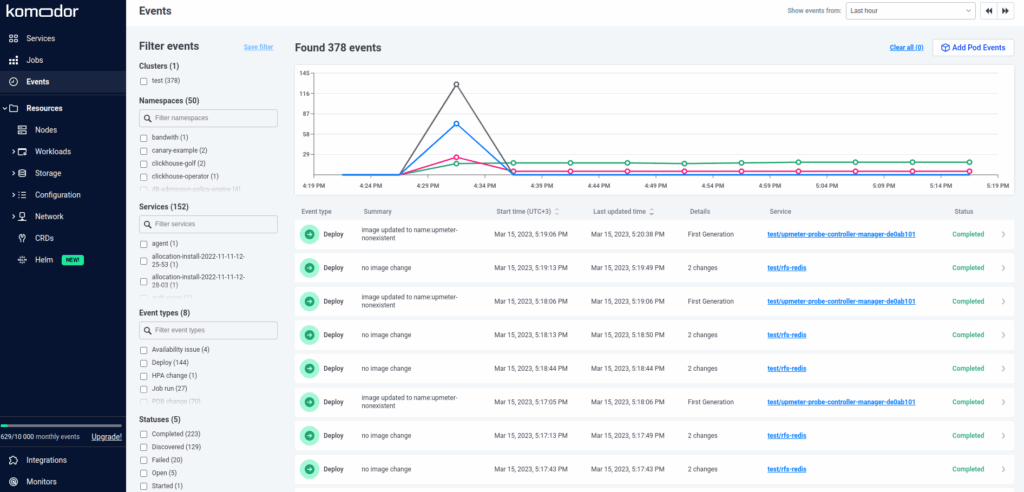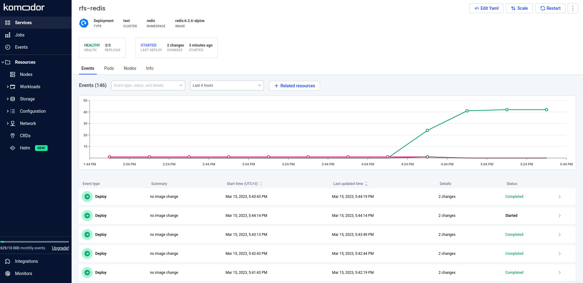 Launched back in 2020, Komodor is a service deployed in a K8s cluster for managing resources running inside the cluster, monitoring their statuses, and customising alerts to notify the user of any critical incidents that occur. At the same time, it does not support creating any new resources or deploying any applications from scratch — all you can do is roll them back to a previous version.