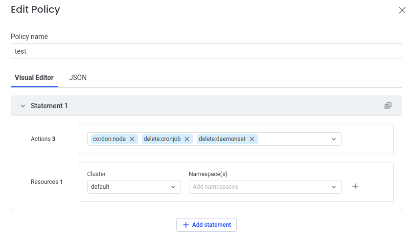 - Configuring resource access rights from the UI. You can create a custom policy, add it to a role, and then assign that role to your teammate. In doing so, you do not need to gain a prior grasp of the basics of Kubernetes RBAC. All you have to do is specify the access rights for the Watcher service in your Values while installing Komodor in the cluster.