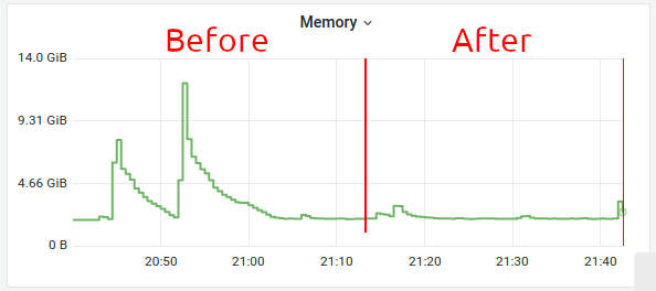 Figure 1: Total memory consumption on the master node at the moment that the problem occurred