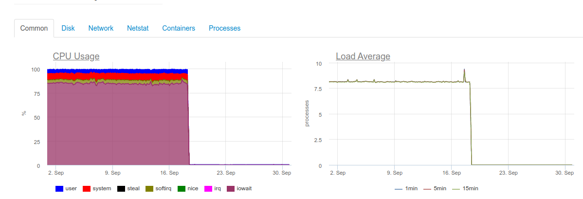 While attempting to ensure real-time collection, we would run into a problem: it turns out that the 4-core server running ClickHouse cannot handle such a load, and its disk subsystem is severely overloaded: