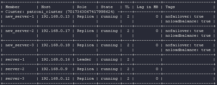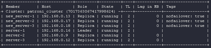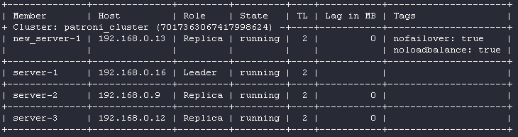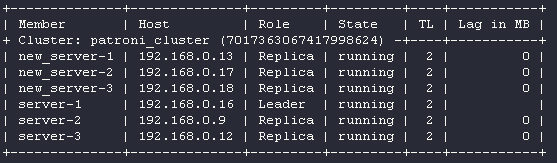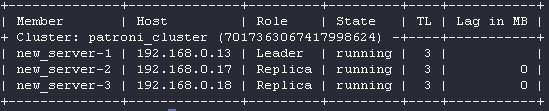 root@new_server-1:# patronictl -c /etc/patroni.yml list