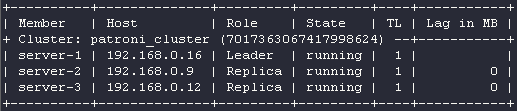 Here is the status of the Patroni cluster: