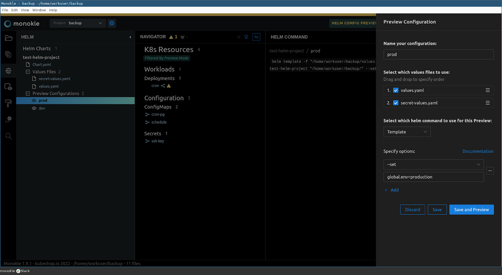 - The Preview Configuration configs are stored in Monokle and are not tied to the projects. As a result, you get a bunch of configs for all the projects in the same place.