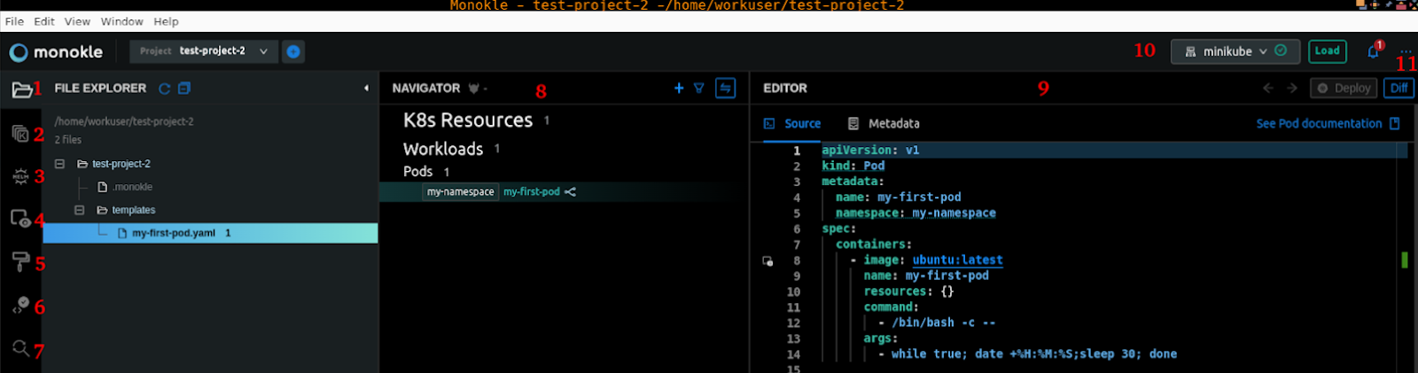 - You can not open some files for editing (I experienced this in v1.9, many of such problems have been fixed in the following v1.10; the most recent Monokle version is v1.13.1, so things might have become even better).